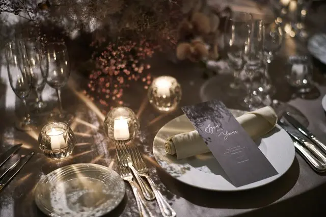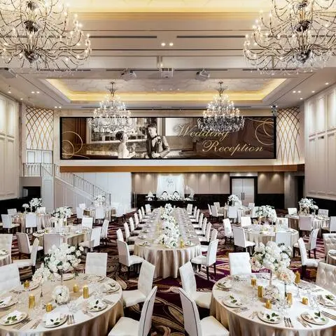 披露宴会場は天井がとても高く、スクリーンも大きくてプロジェクションマッピングの演出ができます。