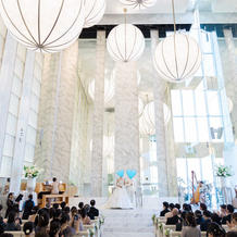天井の装飾や、光の差し込み方、ハーブの置いてあるところなど、天国みたいに綺麗な挙式場です。HP等に掲載されている宣伝写真に全く劣らないくらい、実際の空間が本当に息を呑むくらい素敵です。参列者からも大絶賛でした。
