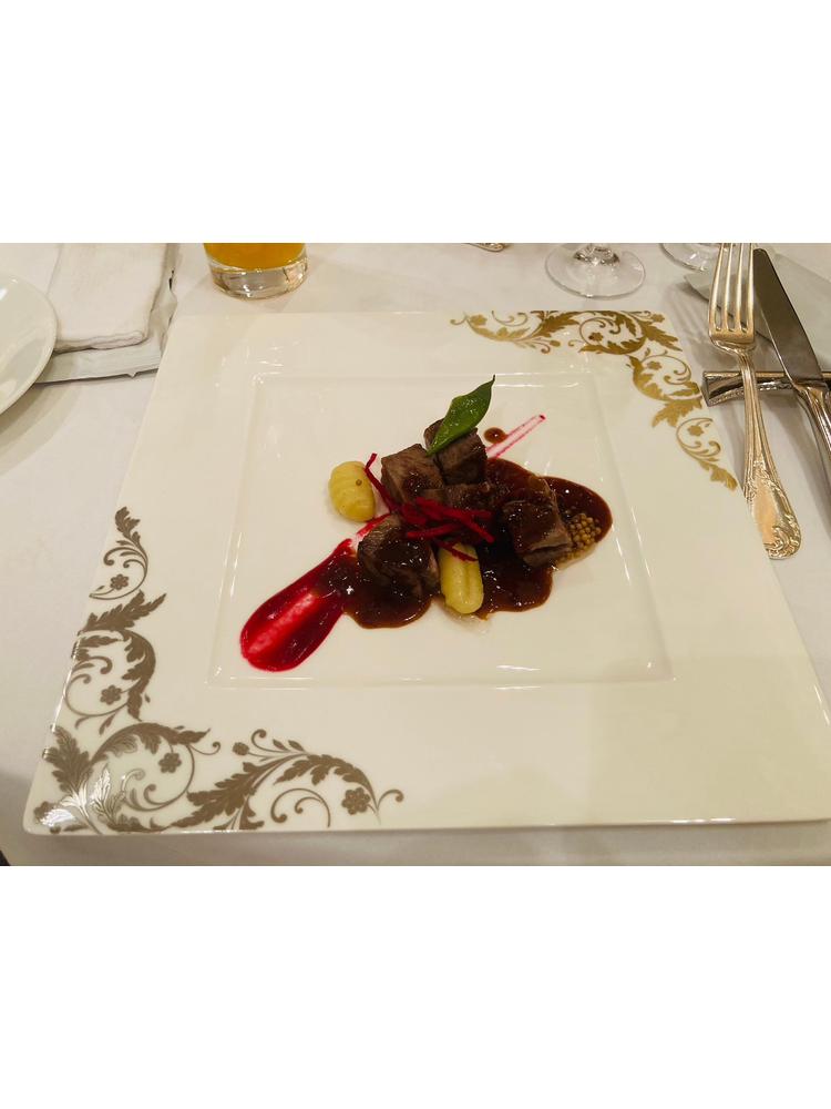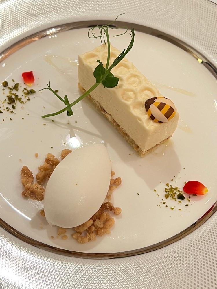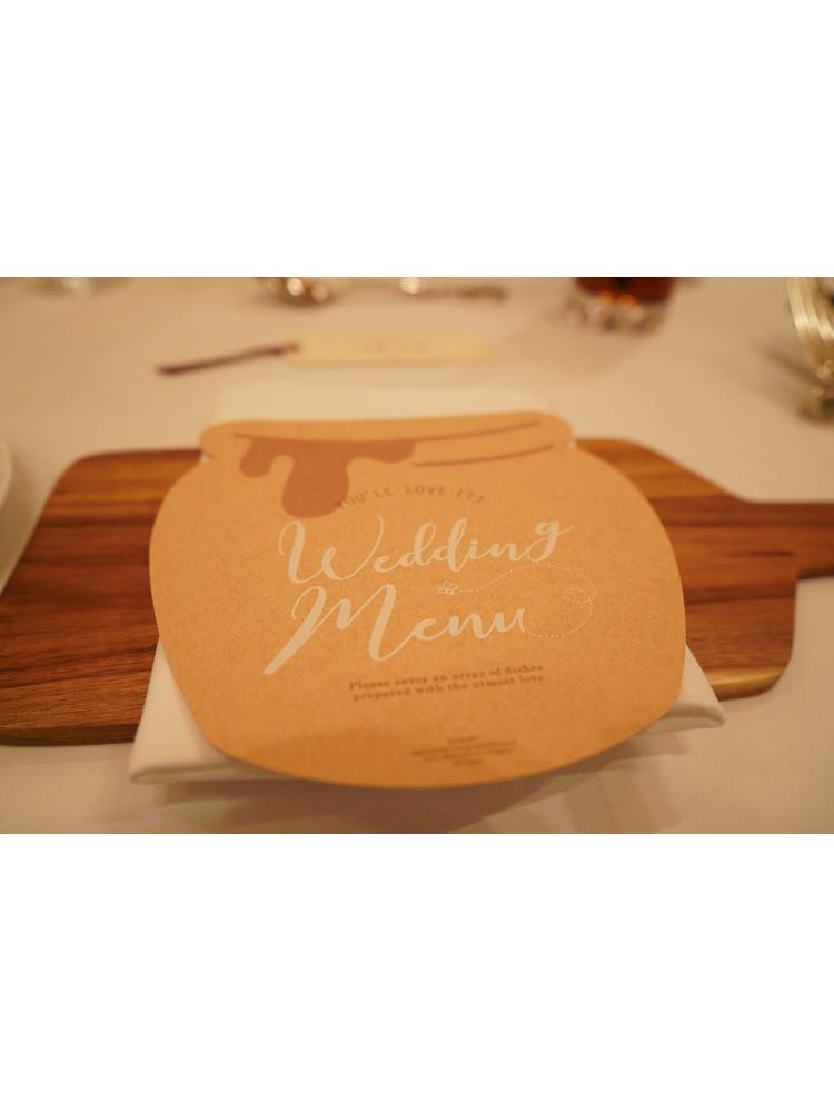 私たちは知らなかったのですが、プーさんをテーマにした結婚式にすることを料理担当される方に担当者が伝えてくださっていたようで、コースのデザートをハチミツをテーマにしたデザートを用意してくださった。