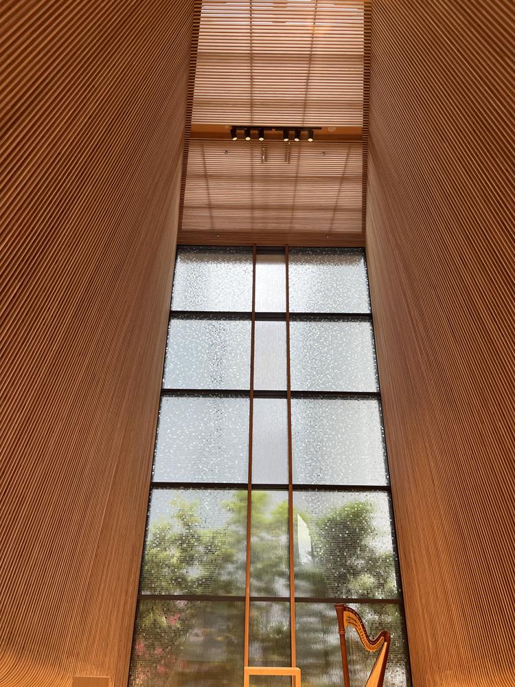独立型のチャペルが本当に素敵でした。シンプルかつ洗練されたデザインで、天井が高く迫力があり、このチャペルで挙式したいなと思いました。また、サウザンドキョウトは新しいホテルであり、ホテル全体がスタイリッシュな雰囲気です。レストランにはおしゃれで大きなオープンキッチンがあり素敵でした。コロナ禍でテーブル同士の間隔をある程度あけることを考慮すると、50名を招待するには少し狭い印象でした。