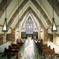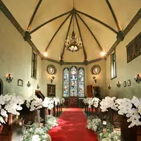 豊かな緑と優しい陽光に包まれた空間に佇む、素朴な優しさに満ちたチャペル。近代デザインの創始者といわれるウィリアム・モリスが、「英国で最も美しい」と称えた緑豊かな丘陵地帯、コッツウォールズ地方に実在するアーツ&クラフツ様式の美しい教会をモチーフに設計。 ガーデンではフラワーシャワーなど祝福の演出も